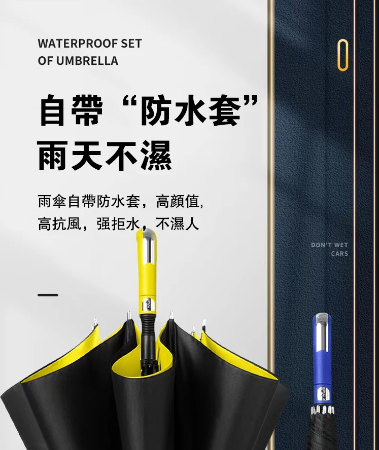 半小時前【防水套高爾夫長柄傘】防水套雙人大號抗風暴雨專用傘 - 優惠價 二入組NT$1380